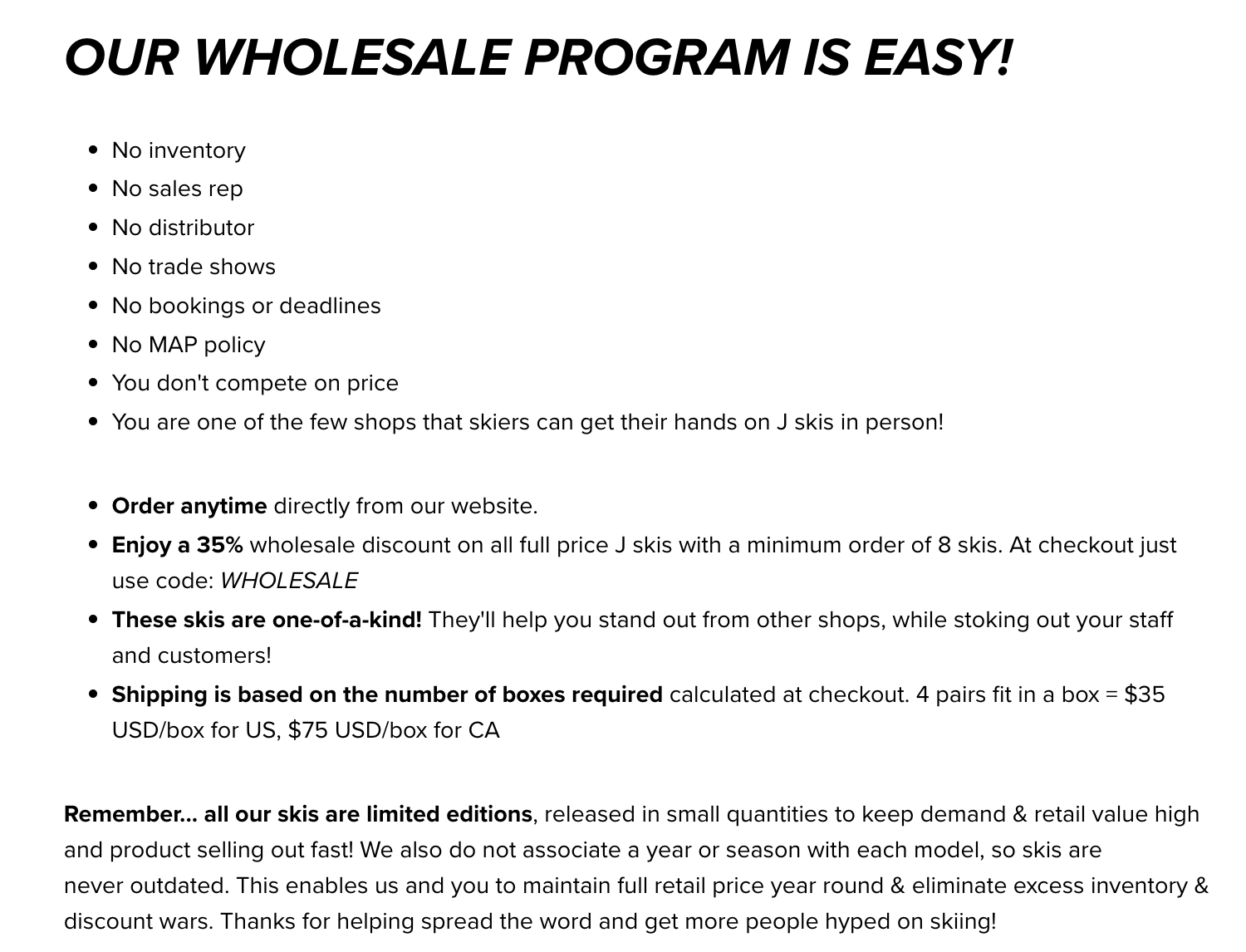 They give a 35% discount to ANYONE who orders at least 8 pairs of ski’s.